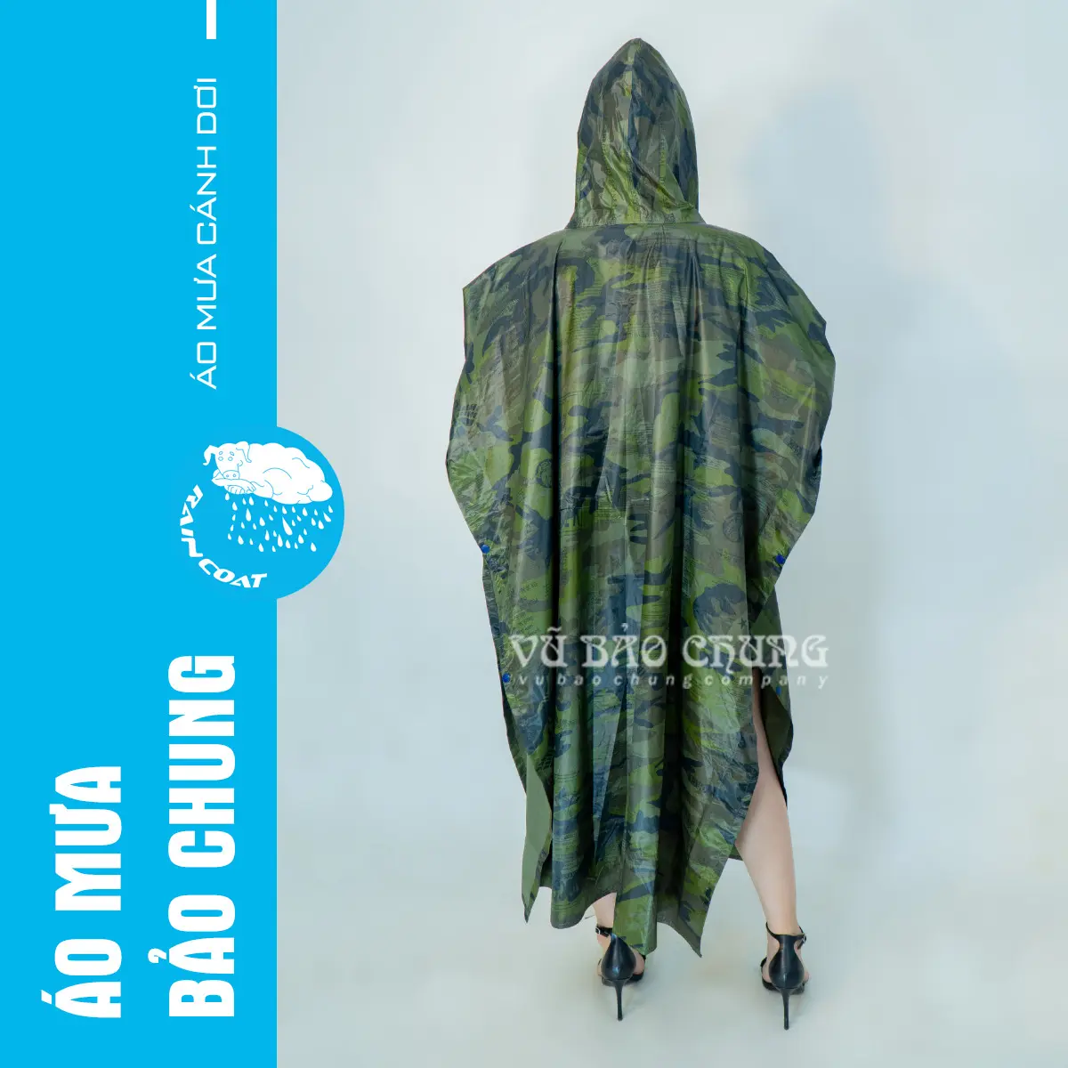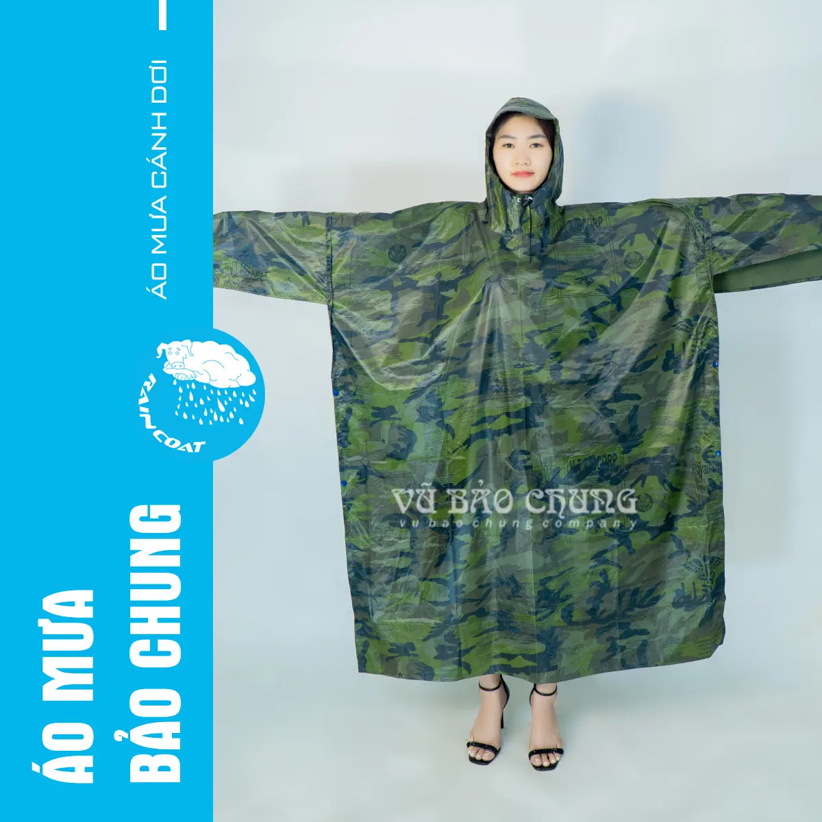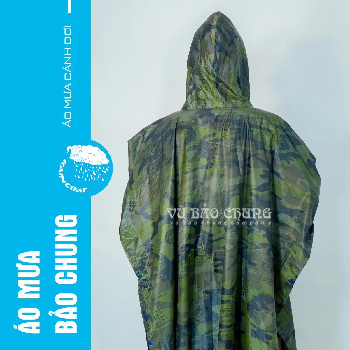 Áo mưa cánh dơi quân đội, hay còn được gọi là áo mưa 2 tà, thiết kế độc đáo với tà trước và tà sau. Việc sử dụng rất đơn giản, chỉ cần trùm áo lên và bạn đã sẵn sàng đối phó với mưa. Với màu lính rằn ri quân đội, sản phẩm này còn thêm phần phù hợp và lôi cuốn.